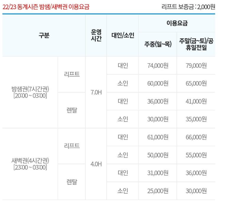 또한 22.12.3~22.12.9(금)까지 리프트권 15,000원입니다.