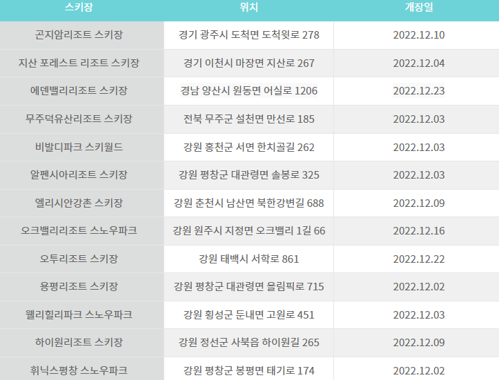 * 곤지암리조트 스키장 개장일:2022.12.10