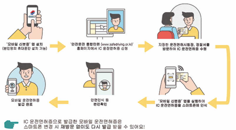 첫 번째 운전면허시험장으로 직접 방문해서 IC운전면허증을 스마트폰에 태그 해서 바로 발급을 받을 수 있습니다.
