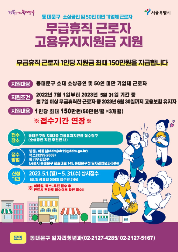 동대문구 무급휴직 근로자 지원금 신청 150만 원 지원