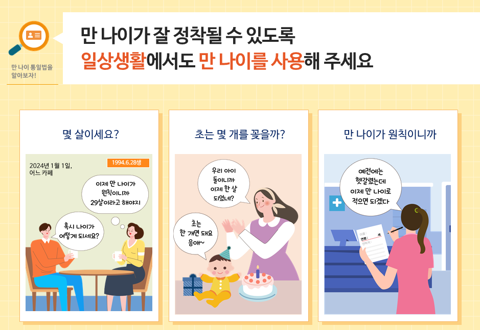 그래서 만 나이 통일법 시행으로 인하여 우리 일상에서 나이로 인하여 혼란을 일으킬 수 있는 사항을 정리해 드리겠습니다.