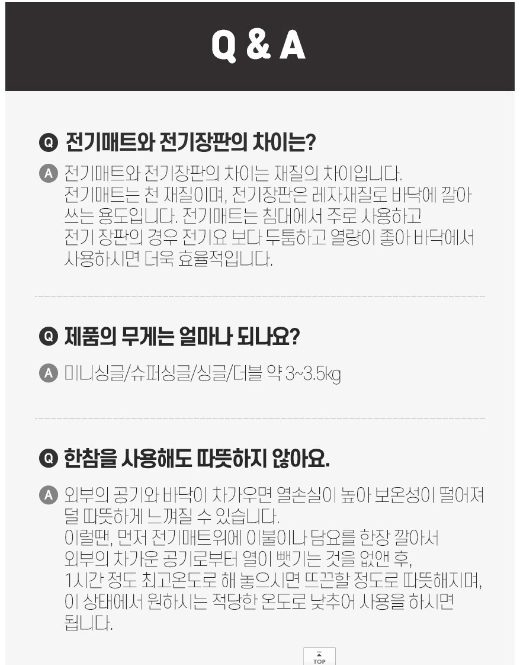 | 전기장판 상품정보 상세 보기 |
