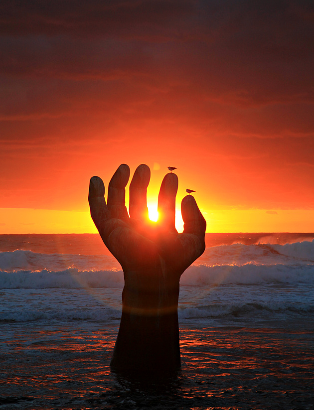 바다 위에 손이 있고 그 사이로 태양이 뜨는데 붉은 태양이 너무나 아름답고 이 기운은 정말 말로 표현 못할 정도로 강렬하게 느껴졌습니다. 정말 하다못해 황홀하다는 말로도 표현을 할 수 있겠습니다. 너무나 감사한 것은 날이 흐렸지만 그래도 흐린 만큼 태양이 멋지게 잘 보여줘서 얼마나 감사한지 모르겠습니다. 이 순간도 잠시 다시 먹구름이 쌓여 태양은 구름 속으로 다시 숨어버렸습니다. 하지만 그 찰나의 순간에 마음껏 누렸고 황홀함과 아름다움을 내 눈에 간직하고 기억하고 있기 때문에 아쉬운 점은 없었습니다.