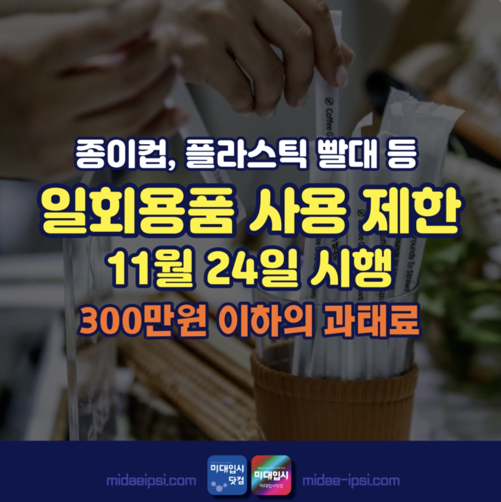 2022년 11월 24일부터 시행되는 법이 계정이 됩니다. 계도기간은 1년으로 시행 하지만 그 이후부터 지켜지지 않으면 과태료 300만 원을 내야 하기 때문에 지금부터 미리 알고 대처를 하겠습니다. 우리는 식당과 카페, 배달 등 여러 곳에 일회용품들이 사용 규제가 되어 일상 속에서 일회용품을 보기 어려워지게 됩니다. 앞으로는 개인컵이나 개인 빨대 등 일회용이라는 단어와 제품들은 없어질 것이고 보기 힘들어진다고 생각합니다. 따라서 우리는 이 규제 방법을 잘 알고 있어야 과태료를 내지 않고 돈을 지킬 수 있습니다.